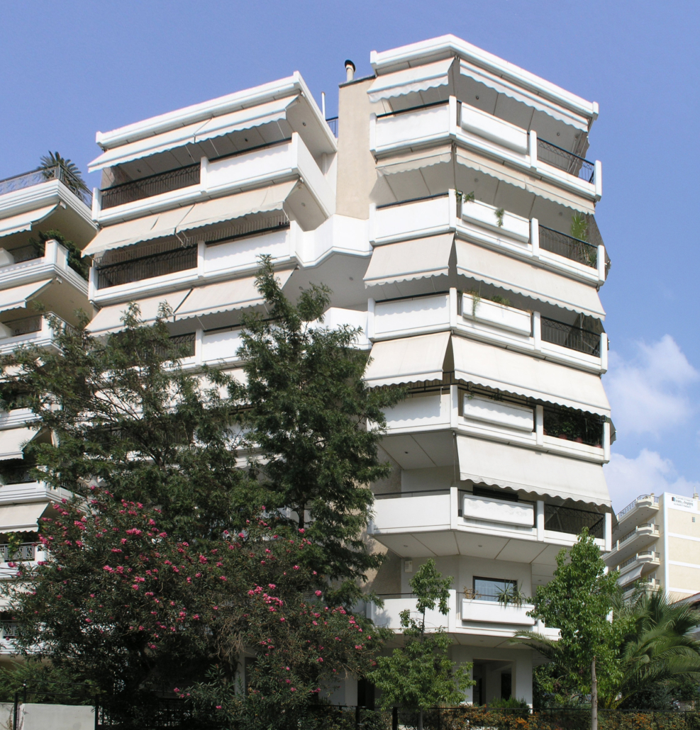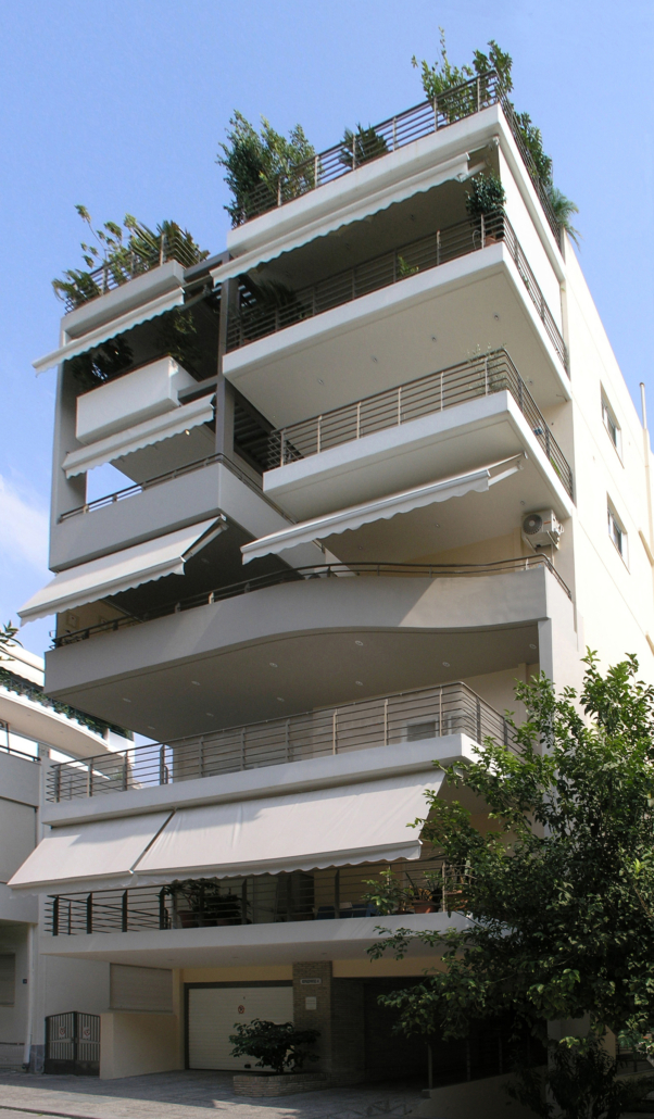 - Εξαώροφη πολυκατοικία επί πιλοτής στην οδό Ελλησπόντου, Νέα Σμύρνη Αττικής